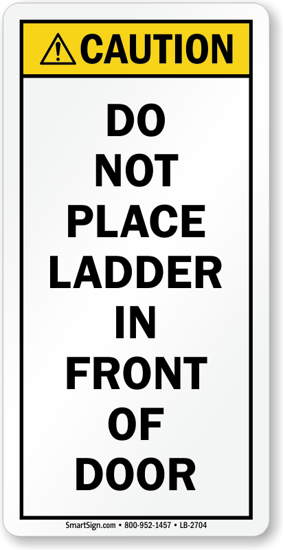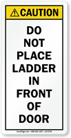 Caution workers against placing ladder in front of the door. Apply this Caution label for the purpose.