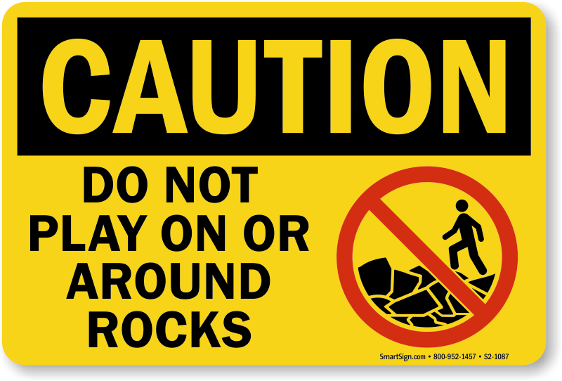 Caution children and everyone not to play on or around rocks with this bold Caution Sign.