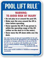 Pool Lift Sign: Pool Lift Rule : Do Not Play On Or Around The Pool Lift S2-5392 Learn More...