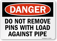 OSHA Danger Sign: Do Not Remove Pins With Load Against Pipe S2-5234