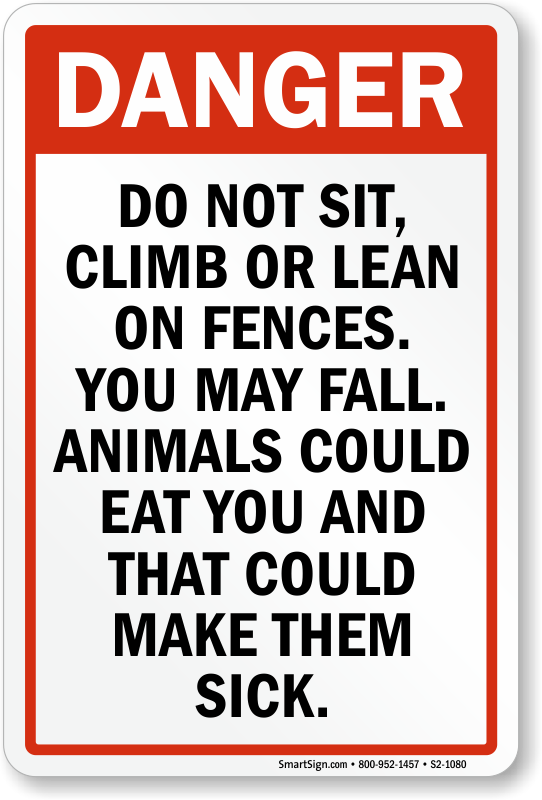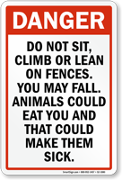 Fall Hazard Danger Sign: Do Not Sit, Climb or Lean on Fences, You May Fall S2-1080 Learn More...