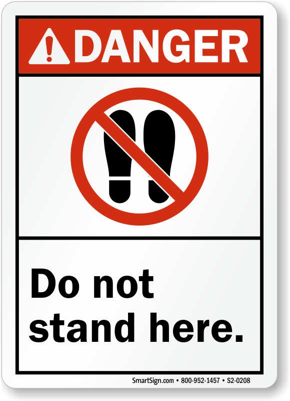 Install this ANSI Danger Sign with ISO prohibition symbol in areas which are unsafe for people to stand on.