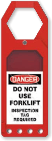 - Tag is displayed through the clear view front window area and can be conveniently changed whenever required. "Do Not Use Forklift, Inspection Tag Required" is the default message that displays.