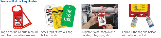 - Made of plastic, the tag holder features your safety message between two frames which can be locked at the base using padlocks.
