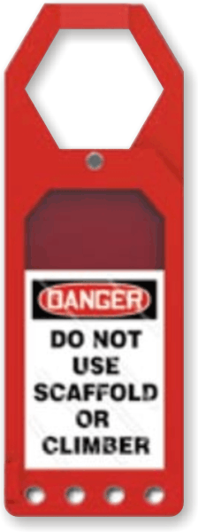 - The tag inside the holder is changeable. However, the default message reads "Do Not Use Scaffold Or Climber".