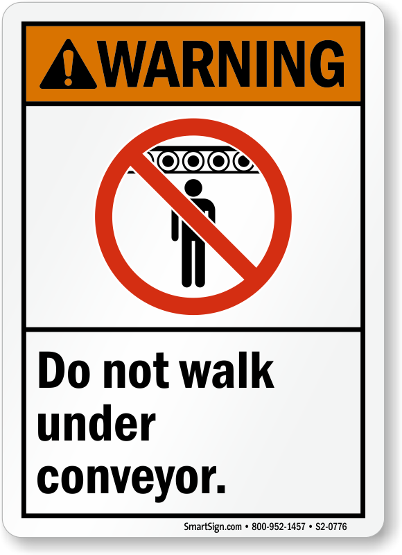 ANSI Warning Sign: Do Not Walk Under Conveyor (With Graphic)