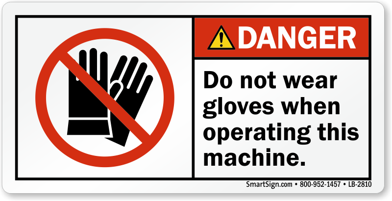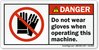 ANSI Danger Safety Label: Do Not Wear Gloves When Operating This Machine (With Graphic) LB-2810