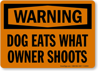 Funny Beware Of Dog Warning Sign: Dog Eats What Owner Shoots S-6354