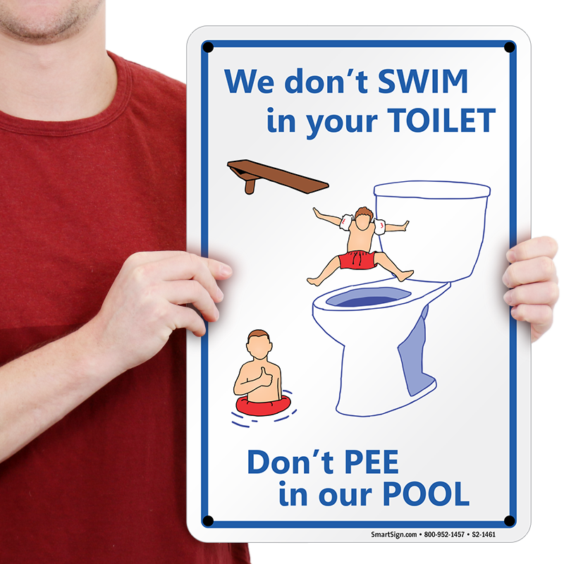 Funny Pool Sign: We Do Not Swim In Your Toilet, Do Not Pee In Our Pool with Graphic S2-1461