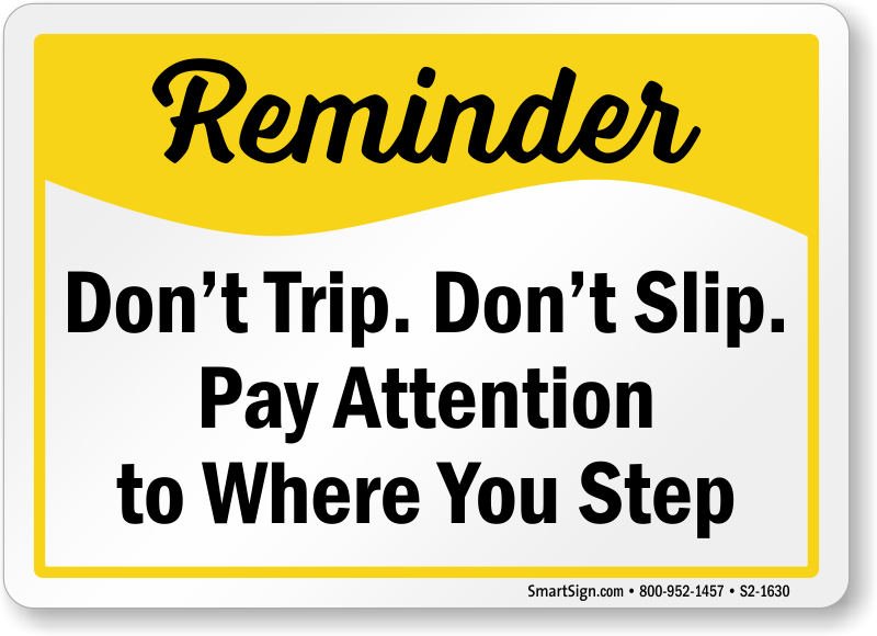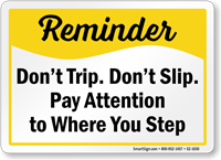 Safety Reminder Sign: Don't Trip. Don't Slip. Pay Attention To Where You Step S2-1630