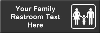 Tired of browsing through stock signs? Now type your own text and make your own Family Restroom Sign in just a few minutes.