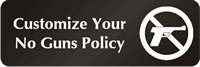 Add the fine or rules that are applicable to your community, school or office. Bold No Guns symbol is easy to understand and draws added attention to your No Guns Allowed sign.