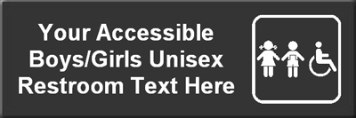Tired of browsing through stock signs? Now type your own text and make your own Accessible Unisex Restroom Sign in just a few minutes.