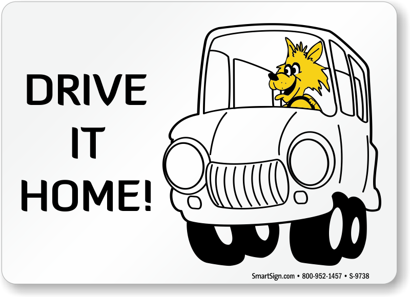 Fun Safety Fox Sign: Drive It Home! (With Fox Driving Vehicle Graphic)