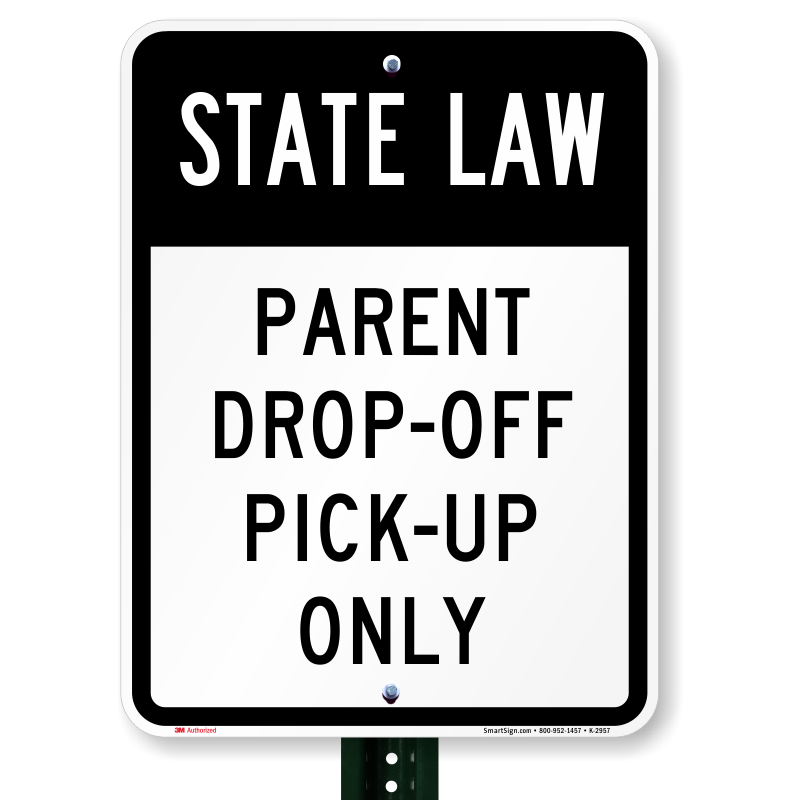 School Pick-Up Sign: State Law, Parent Drop-Off Pick-Up Only K-2957 Learn More...