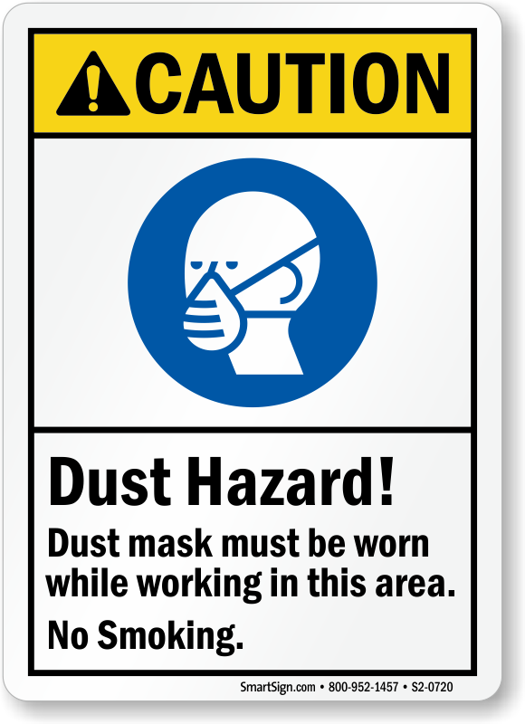 ANSI Caution Sign: Dust Hazard Dust Mask Must Be Worn While Working In This Area No Smoking (With Graphic)