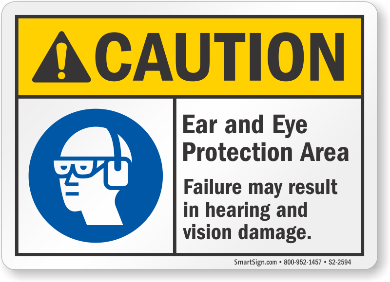 ANSI Caution Sign: Ear And Eye Protection Area, Failure May Result In Hearing And Vision Damage