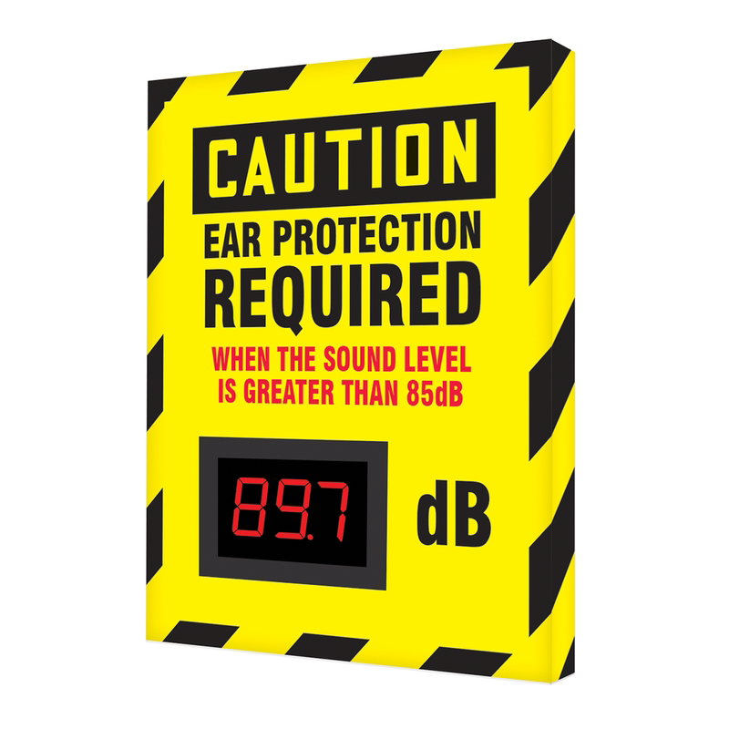 OSHA reports that on average twenty-two million workers are exposed to potentially damaging noise at work each year, Decibel Meter Signs measure and display decibel levels to alert workers of the need for ear protection—encouraging workers to use ear protection when sound levels are elevated and become hazardous to them.