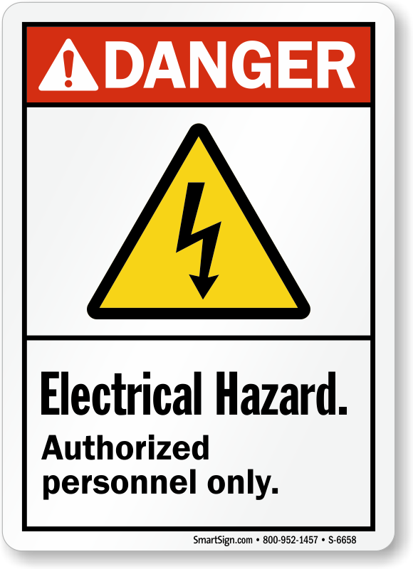 Let only authorized personnel enter the area with electrical hazard. An ANSI Danger Sign reinforces compliance with your instructions.