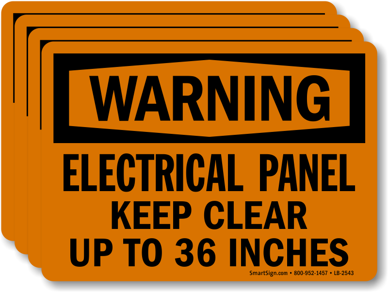 Inform all workers to keep clear up to 36 inches from the electrical panel. Post this OSHA Warning label and keep everyone informed of the danger. Bright orange background and bold WARNING header makes your message impossible to miss.
