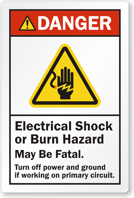 ANSI Danger Label: Electrical Shock Or Burn Hazard - May Be Fatal, Turn Off Power And Ground If Working On Primary Circuit LB-2401
