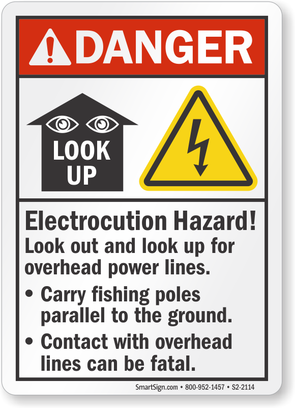 Anglers always look out for overhead power line warnings. Use this ANSI Danger Sign to warn them.