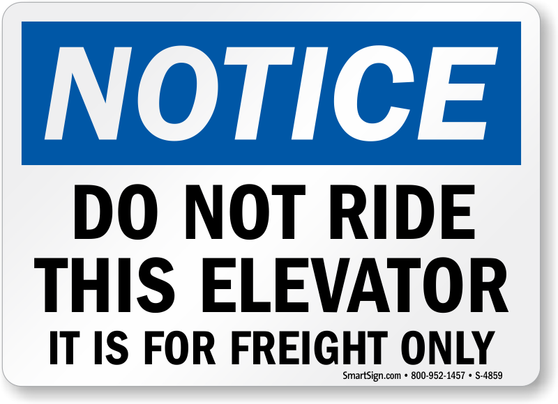 Keep elevators safe. Use a "do not ride this elevator it is for freight only" sign.