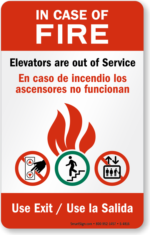 Use elevators properly. Use a "in case of fire elevators out of service (tri-flame)" sign. Improve for your next inspection!