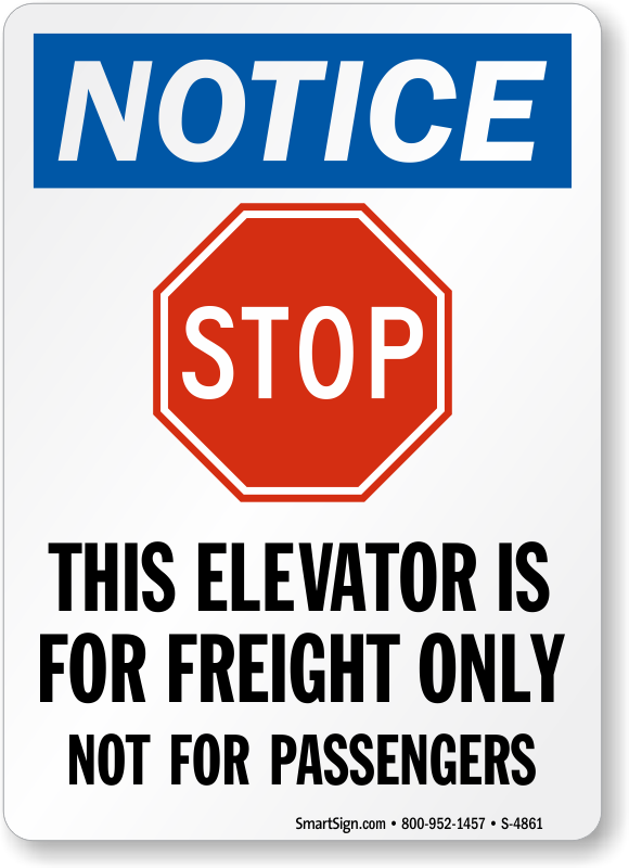 Make elevator safety a part of your plan. Use a "this elevator is for freight only not for passengers (with graphic)" sign.