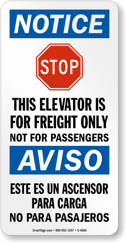 Use elevators properly. Use a "this elevator is for freight only not for passengers (with graphic) (bilingual)" sign.