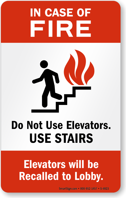 In Case Of Fire Sign: Do Not Use Elevators. Use Stairs, Elevators Will Be Recalled To Lobby S-4823