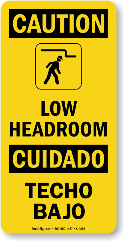 Keep elevators safe. Use a "low headroom (with graphic) (bilingual)" sign.