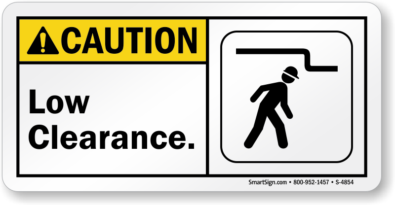 This Caution ANSI Low Clearance Sign effectively reminds people to watch out for overhead hazards.