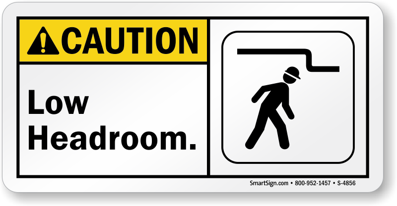 Elevator safety is a priority for all organizations. Use a "low headroom (with graphic)" sign for communicating your safety policies.