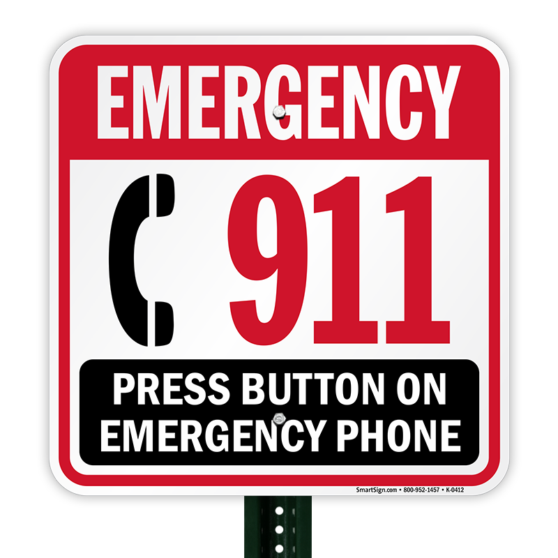 Emergency Phone 911 Sign: Emergency 911 Press Button On Emergency Phone K-0412 Learn More...