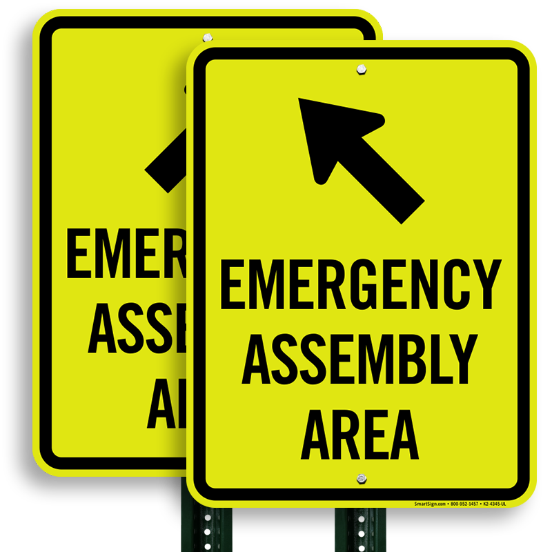 Emergency Assembly Sign: Emergency Assembly Area With Upper Left Arrow K2-4345-UL Learn More...