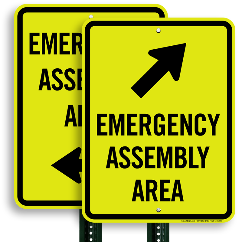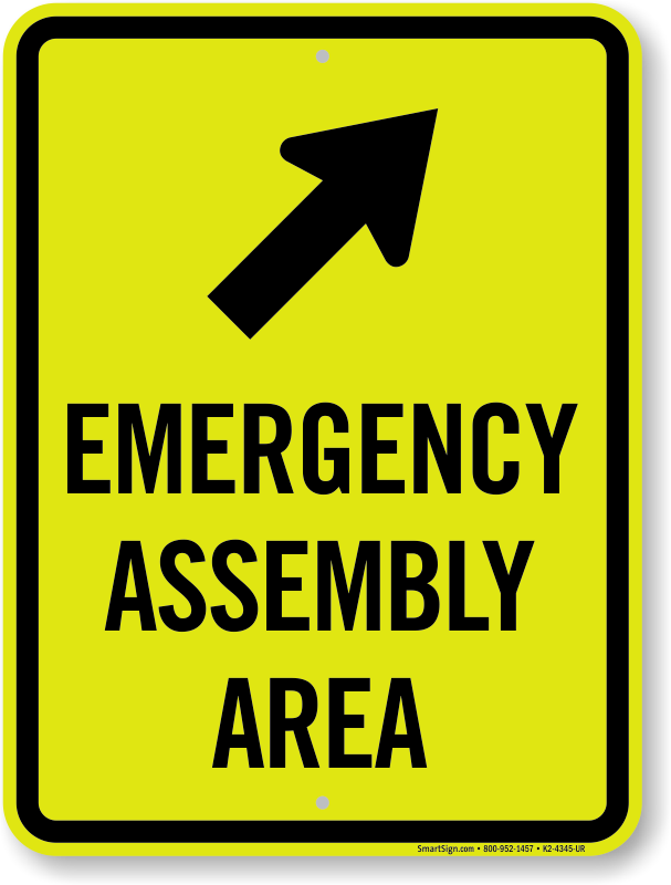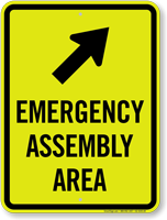 Emergency Assembly Sign: Emergency Assembly Area With Upper Right Arrow K2-4345-UR Learn More...