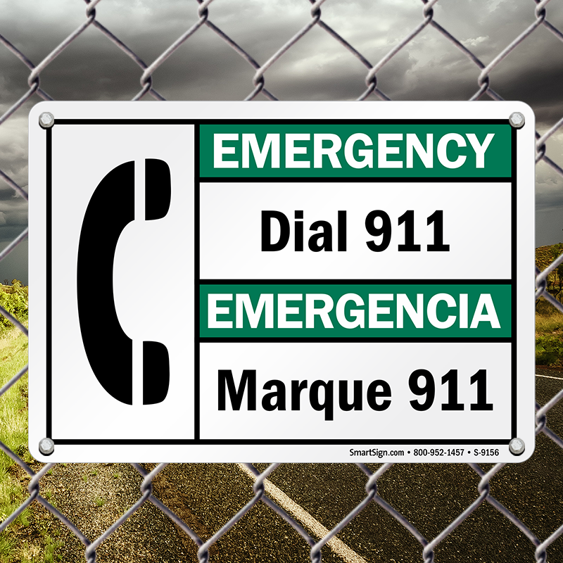 Bilingual Emergency Sign: Emergency Dial 911 / Emergencia Marque 911 (With Graphic) S-9156