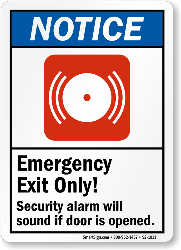 Good quality product. No question over what will happen if you open the door. Only negative is the constant branding at the bottom- Small pet peeve. Like, someone's going to walk up to the door, realize it's an emergency exit, look down, see the SmartSign website link, and be like, "Oh, I want to get my own sign like this."