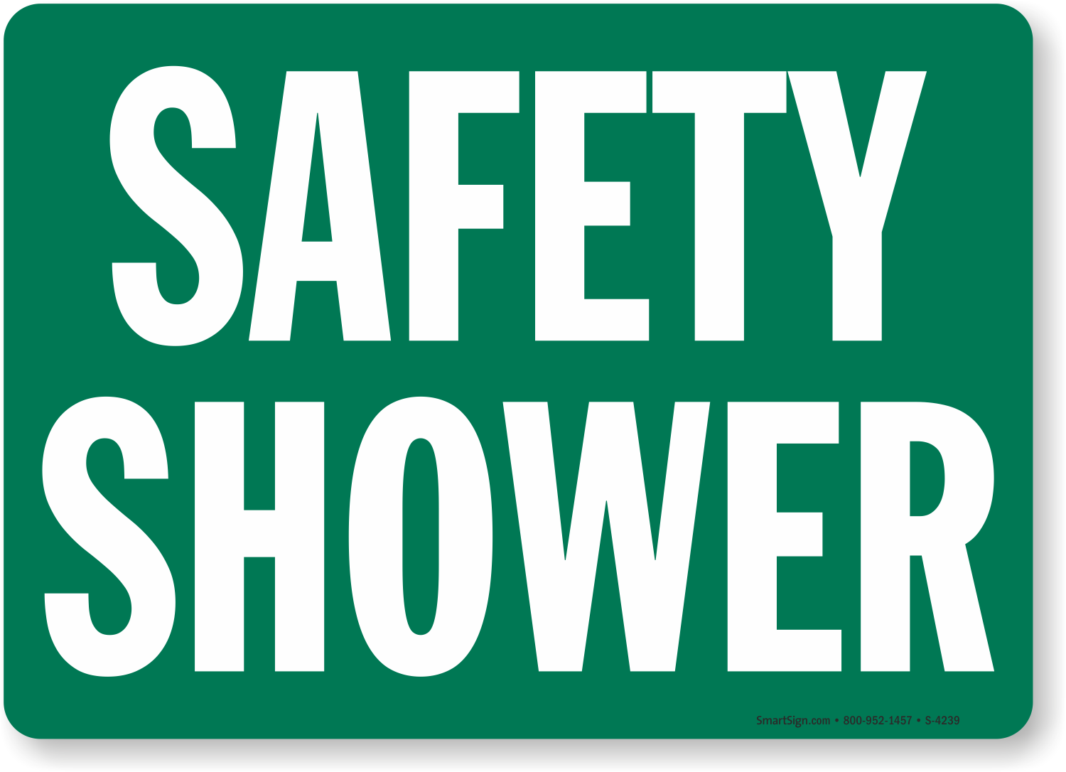 Use a "safety shower (white on green)" sign. Signs make an important point.