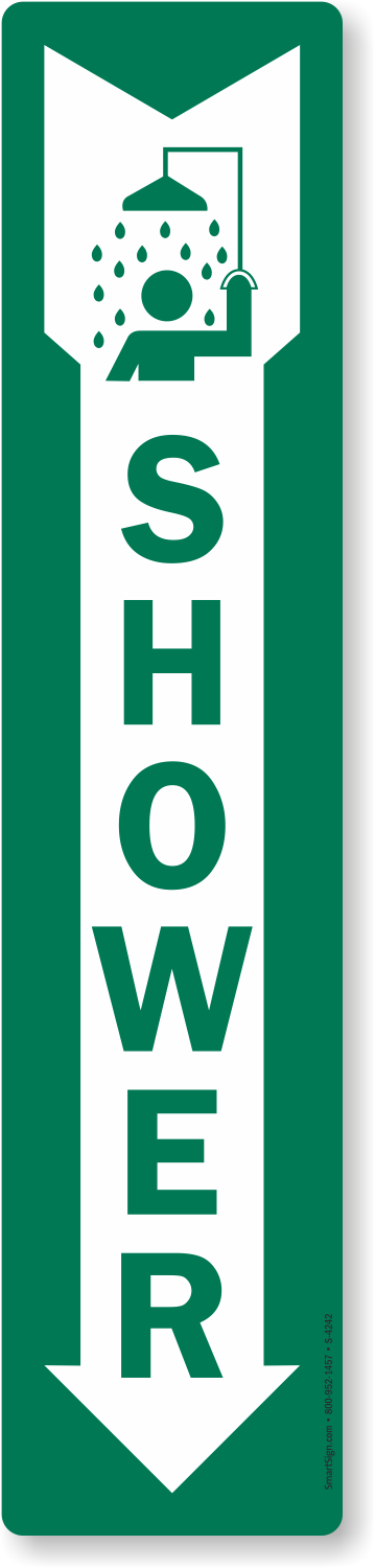 Use a "shower (with graphic) (arrow)" sign. Signs are a constant reminder.