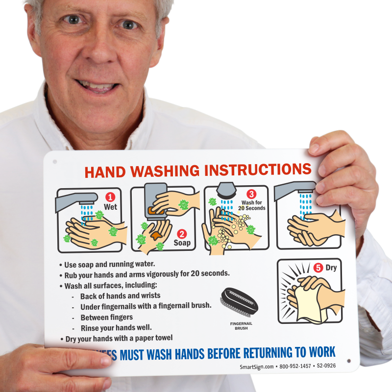 With this Hand Washing Instructions Sign, encourage employees to practice good hand hygiene in the bathroom before returning to work.