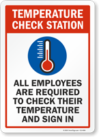 Social Distancing Sign: Temperature Check Station - All Employees Are Required To Check Their Temperature And Sign In S2-4508