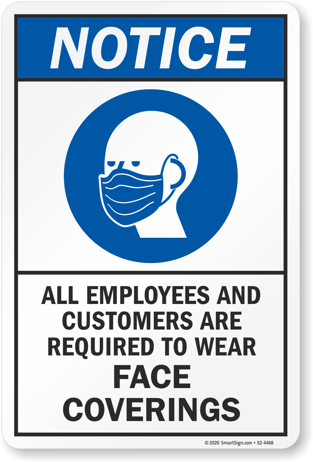 ANSI Notice Sign: Notice - All Employees And Customers Are Required To Wear Face Coverings