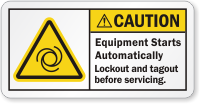 Apply ANSI label and remind workers to lockout, tagout the auto-start equipments before servicing them.