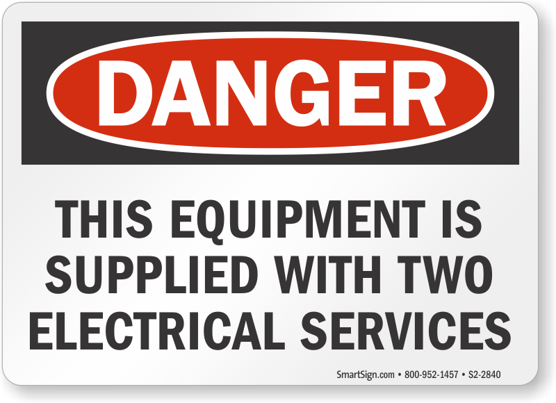 OSHA Danger Sign: This Equipment Is Supplied With Two Electrical Services S2-2840