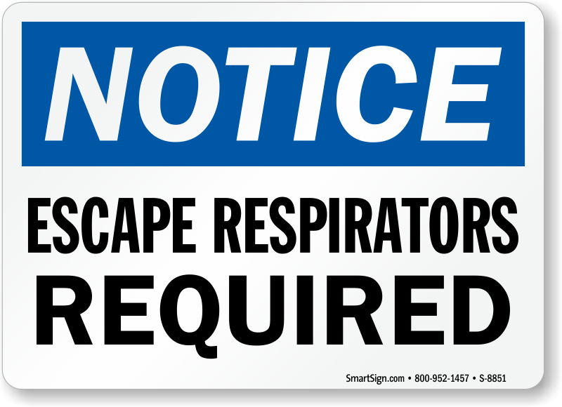 During fire or chemical outbreak, workers should use escape respirators for safety. ‘Personal Protective Equipment Required Sign’ reminds people about this.