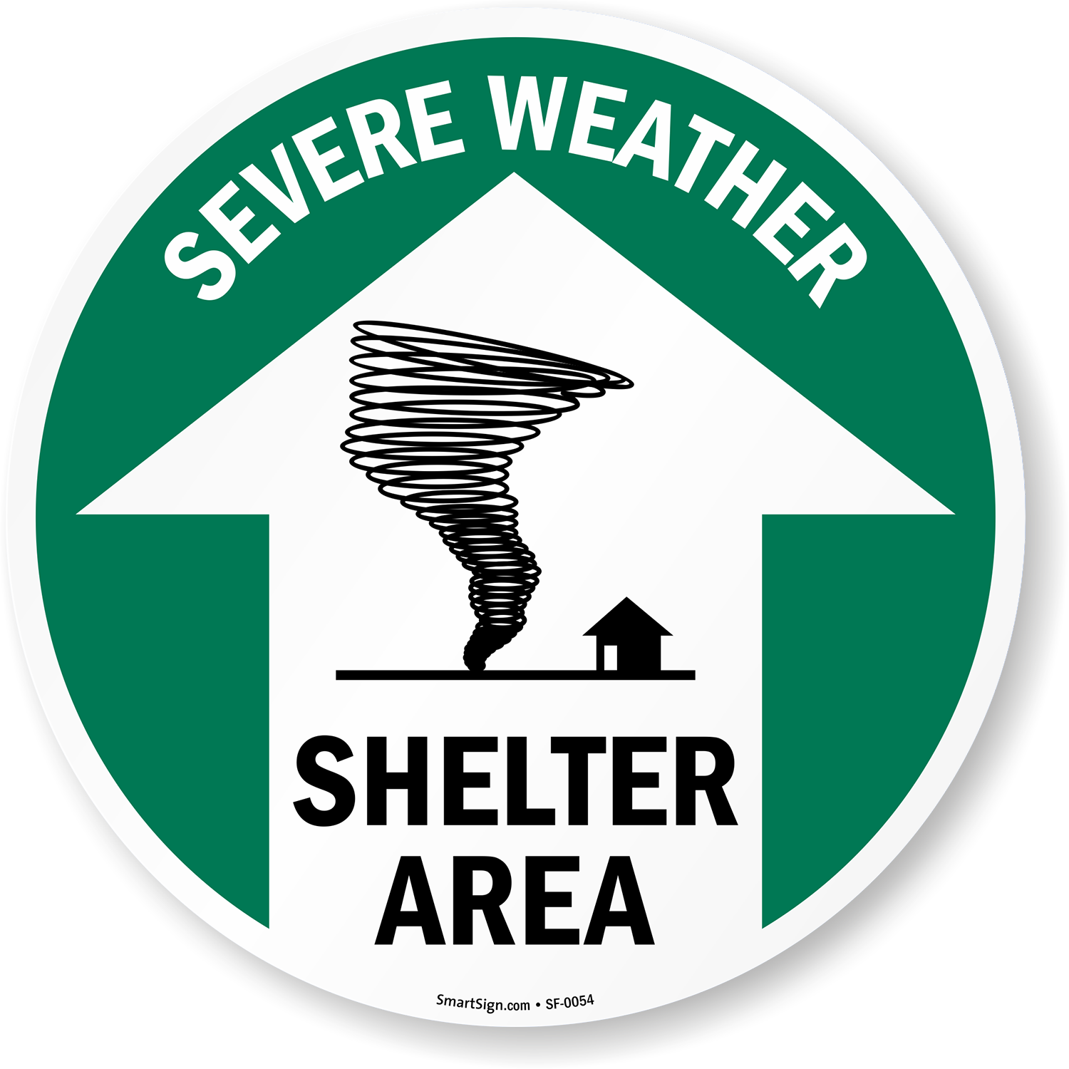 - This Severe Weather floor sign is 17 inches in diameter and ideal for emergency facilities.