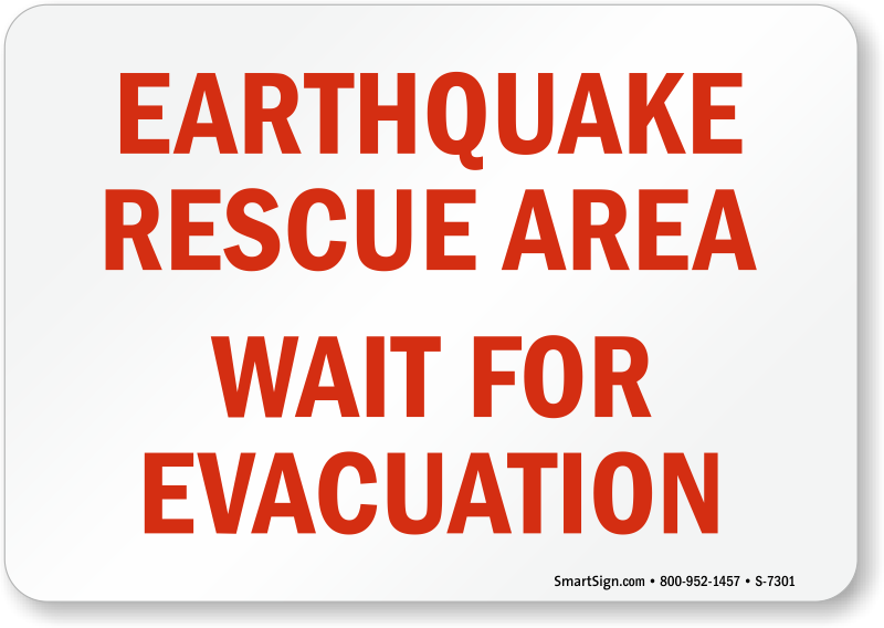 Post this Earthquake Rescue Area Wait For Evacuation Sign to help reduce the amount of chaos in an emergency. Being prepared for an earthquake is essential since there is hardly ever a warning, use this sign so that when the time comes everyone knows where to go.