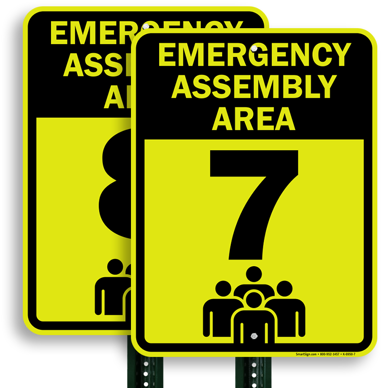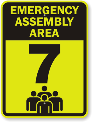 Emergency Assembly Area & Fire Drill Sign: Emergency Assembly Area 7 K-6950-7